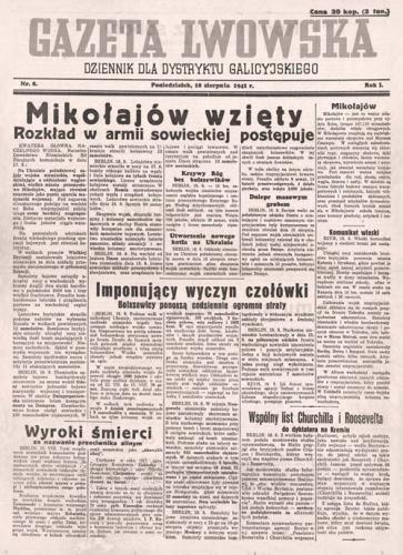Gazeta Lwowska” została reaktywowana przez Niemców w 1941 roku, po wkroczeniu Wehrmachtu do Lwowa. Formalnie była to polskojęzyczna gazeta „dla ludności”, ale całkowicie kontrolowana przez okupacyjne władze niemieckie. Nie miała brutalnego charakteru jak „Der Stürmer”, ani prestiżowego jak „Signal” — jej zadaniem było uspokojenie i jednoczesne podporządkowanie polskiego społeczeństwa, bez otwartego zastraszania, ale też bez złudzeń co do tego, kto rządzi. „Gazeta Lwowska” mieszała informacje praktyczne z życia codziennego (handel, aprowizacja, komunikaty administracyjne, zakazy i zarządzenia policyjne) z ostrożnie dawkowaną propagandą antybolszewicką i antyżydowską. Miała przede wszystkim odciągnąć Polaków od słuchania radia londyńskiego oraz od kontaktu z podziemiem, tworząc wrażenie, że „normlane życie” mimo wojny nadal funkcjonuje- oczywiście pod niemiecką kontrolą. Nie była gazetą ideologiczną- była narzędziem okupacyjnego zarządzania populacją. Jej ton był chłodny, chłodno urzędniczy, pozornie informacyjny. Dzięki temu bywała mylona z normalną prasą- i właśnie w tym tkwiło jej największe niebezpieczeństwo. Manipulowała nie krzykiem, lecz pozorem normalności.