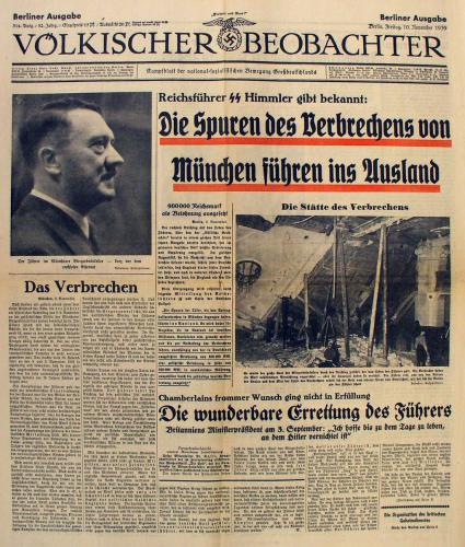 „Völkischer Beobachter” („Obserwator Ludowy”) stanowił oficjalny organ prasowy NSDAP. Założony jeszcze w okresie Republiki Weimarskiej, został wykupiony przez partię Hitlera w 1920 r. i szybko stał się najważniejszym dziennikiem propagandowym w Niemczech. Po 1933 roku był pismem ogólnokrajowym, publikującym przemówienia Hitlera, artykuły ideologiczne Goebbelsa, raporty z działalności partii i teksty o charakterze wychowawczym. Nakład sięgał kilku milionów egzemplarzy, a jego redakcja mieściła się w Monachium i Berlinie.