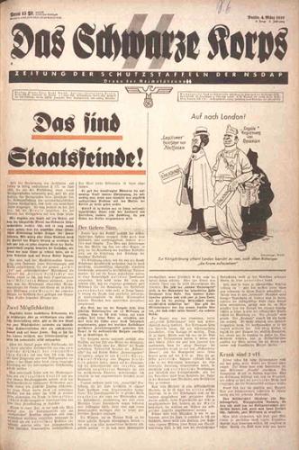 „Das Schwarze Korps” (pol. „Czarny Korpus”) było oficjalnym organem prasowym SS, wydawanym od 1935 roku z inicjatywy Heinricha Himmlera. W przeciwieństwie do gazet takich jak „Signal” czy „Pariser Zeitung”, które działały subtelnie, ten tygodnik był otwarcie fanatyczny, ideologicznie brutalny i przeznaczony przede wszystkim dla członków SS oraz radykalnego aparatu władzy. Główne cechy „Das Schwarze Korps” to język bezwzględny, militarny, fanatyczny- zero kompromisów, maksymalnie agresywna retoryka antysemicka i antybolszewicka. Atakował Kościół katolicki, masonerię, inteligencję, „element niepewny rasowo”, każdego, kto nie był zgodny z linią SS. Zawierał bardzo dużo pseudonaukowej ideologii rasowej, eugeniki i „oczyszczania narodu” oraz oficjalne linie ideologiczne Himmlera i wiernie powtarzał doktrynę „aryjskiej czystości” SS.