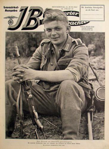 „Illustrierter Beobachter” był jednym z najważniejszych ilustrowanych tygodników propagandowych NSDAP, wydawanym od 1926 roku. W przeciwieństwie do brutalnych tytułów takich jak „Der Stürmer”, gazeta ta od początku stawiała na estetykę, nowoczesną szatę graficzną i wizualną siłę przekazu. Przyjmowała format podobny do popularnych przedwojennych czasopism ilustrowanych, co miało budzić zaufanie i nie odstraszać odbiorcy agresją. Nie epatowano wulgarnością- zamiast tego gazeta ukazywała dumy, triumfy i sukcesy ruchu nazistowskiego, zwłaszcza militarne i techniczne. Często publikowano fotografie masowych zjazdów partyjnych, symbolikę siły i jedności narodu, wizerunki Hitlera budowane jako „przywódcy genialnego i opatrznościowego”. Ilustrowanie propagandy w sposób emocjonalnie atrakcyjny, wręcz podziwowy, było głównym narzędziem wpływu – gazeta miała nie tyle informować, co fascynować. Po rozpoczęciu wojny „Illustrierter Beobachter” jeszcze mocniej skupił się na gloryfikacji Wehrmachtu i SS, pokazując ich jako nowoczesną, kulturalną i moralnie „czystą” siłę stojącą na straży Europy. Żadnych scen terroru – tylko heroiczne portrety żołnierzy, duma narodowa i obraz „cywilizowanej potęgi”.